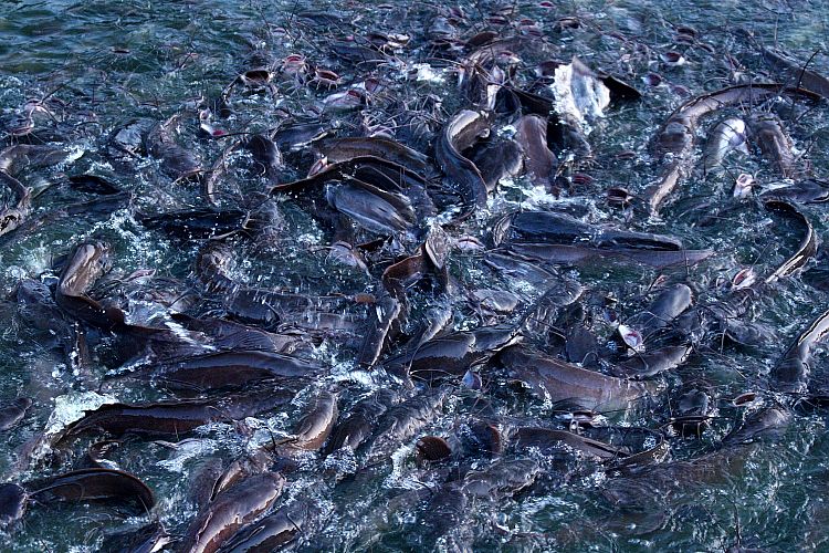 Staw w świątyni w którym żyje niezliczona ilość sumów.