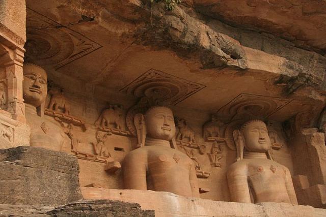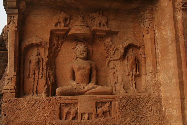 Przy drodze wiodącej do fortu od strony Bramy Urwahi stoją wykute w skale i pochodzące z VII-XV w. tirthankars - nagie posągi dźinijskie przedstawiające tych którzy drogą ascezy osiągnęli stan oświecenia. W 1527 r. muzułmańskie wojska Babura rozbiły tym posągom twarze.