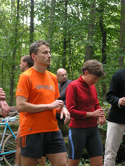 Jesienny smś był prawdopodobnie ostatnim w tym roku, więc warto było pojechać. Pogoda sprzyjała robieniu życiówek i tych trochę dzisiaj padło. Rewelacyjnie spisał się Marcin Kęciek, który na starcie chyba zaczarował swój stoper, bo wykręcił wspaniały czas 34:22! Ze swoich nowych rekordów mogli się dzisiaj ucieszyć Bożenka i Entre (z osób o których wiemy) Wiele w tym zasługi Kociemby, który trąbił biegnącym do ucha :-)