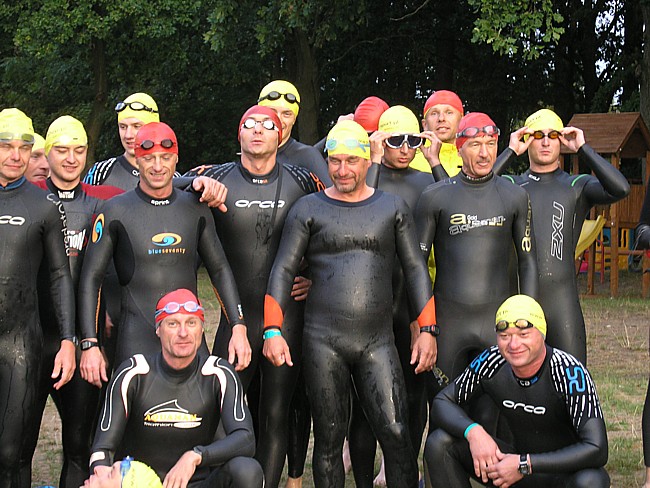 | Potem czas mija szybko i 15 minut przed startem czekamy już stłoczeni na plaży i ustawiamy się do pamiątkowego zdjęcia. Jestem już po krótkim rozpływaniu, poprawiam okularki i słyszę: „5-4-3-2-1-Start”. | |