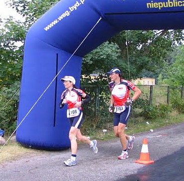 Zabrzmiało groźnie i egzotycznie: dystans 70.3, czyli połowa tego co dzieje się na zawodach IronMan. Decyzja o udziale w imprezie w Borównie k/Bydgoszczy zapadła w chwili, gdy DS ogłosił listę chętnych do zapisania się, jako Grupa IM2010. Nie mieliśmy wtedy jeszcze z Darkiem ani jednego triathlonu na koncie, a od samego myślenia o tym morderczym dystansie miałam na ciele gęsią skórkę. Mieliśmy za to nowy cel: przygotować się, aby ukończyć 1 IM. Wtedy się zaczęło i nasze życie zwariowało jeszcze bardziej. W ciężkie zimowe poranki wstajemy z trudem, aby od 6 rano być już na basenie. Zakup rowerów szosowych i pianek do pływania dla dwóch osób staje się wyzwaniem dla naszego budżetu, wiec rezygnujemy z plazmowego TV ;). Wycieczki rowerowe we dwójkę lub w grupie z nowo poznanymi znajomymi, czy nawet kręcenie na trenażerze, rekompensują nam w zupełności oglądanie kolejnego odcinka emocjonującego serialu telewizyjnego. Z nastaniem wiosny, gdy rozpoczął się sezon triathlonowy udaje się nam zaliczyć zawody na dystansach sprinterskich. Zdobywamy kolejne doświadczenia pływając w jeziorach. Termin i miejsce letniego urlopu jest tak dobrane, aby spełnione zostały kryteria obozu przygotowawczego, czyli nad niedużym jeziorem i z wymagającymi trasami rowerami i biegowymi. Wreszcie nadchodzi ten czas: został jeszcze tylko tydzień do startu. Teraz myślimy już tylko o logistyce wyjazdu, modyfikujemy nieznacznie naszą dietę na bardziej białkową i później węglowodanową. Ostatnie sprawdzenie kompletności sprzętu, odbiór rowerów z serwisu i można jechać. Po drodze rozmyślania jak to będzie i już jesteśmy na miejscu. |