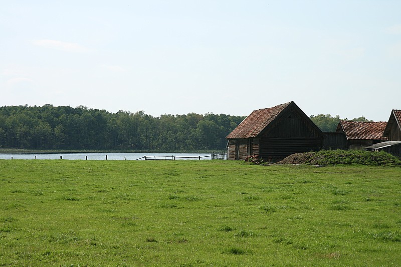 | Dziś na łące widzieliśmy trzy brodzące dostojnie... żurawie. Bocianów tutaj całe mnóstwo, mają w tym roku raj to i nie zbierają się jeszcze na sejmiki przed odlotem. Na jeziorze, szczególnie rano, taki harmider wodnego ptactwa, że własnych myśli nie słychać. Najbardziej wydzierają się młode perkozy.