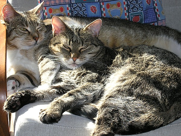 | A dzisiejszy upał zachęcał tylko do leżenia. Nasze koty tak właśnie spędzają ten czas. | |