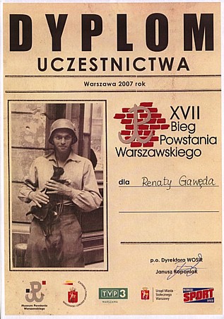 | Takie ładne dyplomy dostawało się na mecie Nocnego XVII Biegu Powstania Warszawskiego. | |