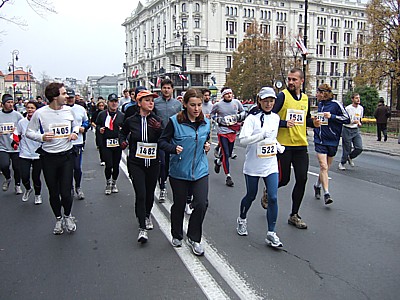 | 12:00 W tłumie startujących (ponad 1500 osób) nie słyszę wystrzału startera. Na Krakowskim Przedmieściu biegniemy bardzo spokojnie, rozmawiamy, śmiejemy się. | |