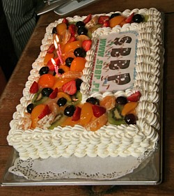 19:30 Spotykamy się w TeaArt na III urodzinach SBBP. Przychodzi ok. 50 osób, co przechodzi nasze najśmielsze oczekiwania. Ale tortu urodzinowego, zrobionego przez zaprzyjaźnioną Cukiernię Włodzimierza Czubaka, wystarczyło dla wszystkich. Wieczór wypełniają rozmowy, prezentacje zdjęć i filmów z dorobku SBBP oraz wspomnienia co się wydarzyło przez te trzy lata istnienia grupy. Spotkanie przeciągnęło się do późnych godzin nocnych. |
