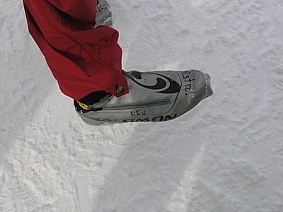 (dlatego na butach widnieje napis „Mistrz”). Żegna się z nami Damek, a my idziemy na chwilę ogrzać się do budynku biura zawodów, nie można jednak wejść do kawiarni („wejście tylko dla VIP-ów” oznajmia ochrona) Kierujemy więc swoje kroki do sklepu sportowego gdzie Mariusz kupuje za radą Dziunka rękawiczki do biegówek. My podziwiamy lekkość kija wykonanego z włókna węglowego i z korkową rączką. Wychodzimy na zewnątrz gdzie są rozstawione namioty z barami i stoiska z odzieżą sportową. Pomimo mrozu stoimy w grupce znajomych bo co chwilę spotykamy człowieka z naszywką biegowki.pl. Zjawiają się jeszcze Riko