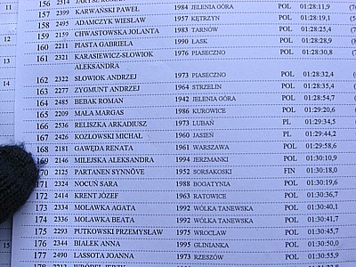 i ostatecznie uplasowaliśmy się: Darek na miejscu 73 z czasem 1:14:32,2 (10 w kat. wiekowej i 65 wśród mężczyzn), a ja na miejscu 181 , natomiast 31 wśród kobiet i byłam 5 w kat. wiekowej.