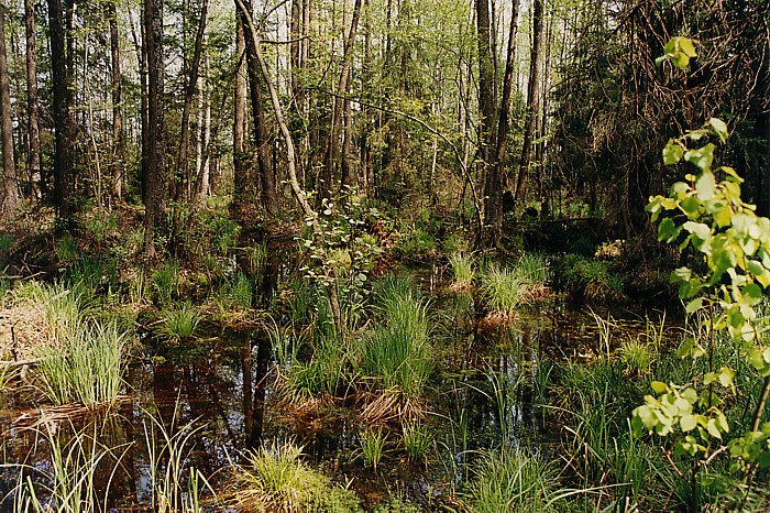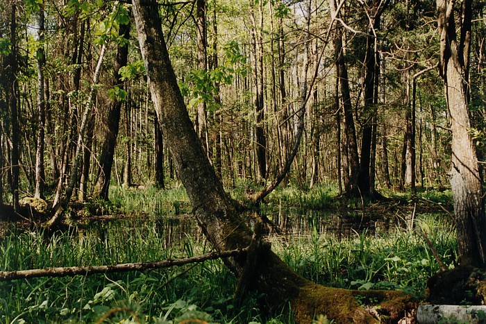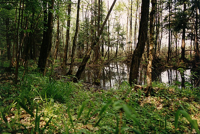 . Biebrza – rzeka o nierównomiernym dorzeczu i małej zdolności odprowadzania wód w jej korycie, corocznie wylewa i przyczynia się do powstania zabagnień, stąd rosnąca tu roślinność tworzy las typowo bagienny