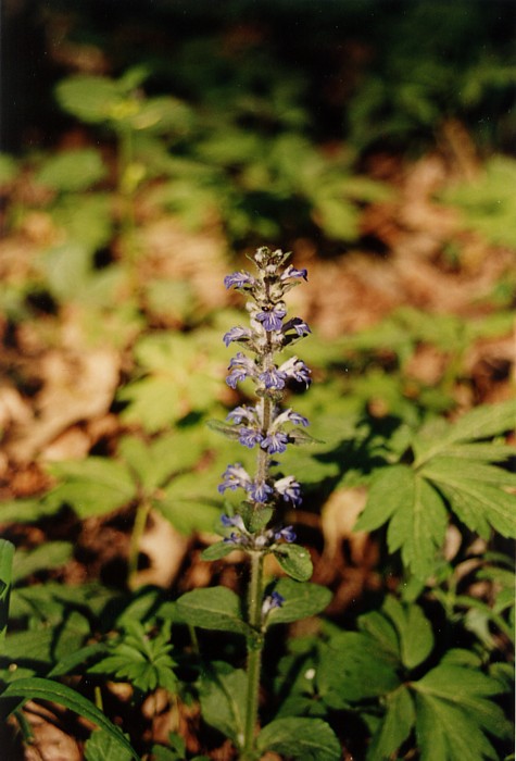 dąbrówka rozłogowa (Ajuga reptans L.) rodzina wargowe - gatunek pospoliy, występuje na łąkach i w widnych lasach