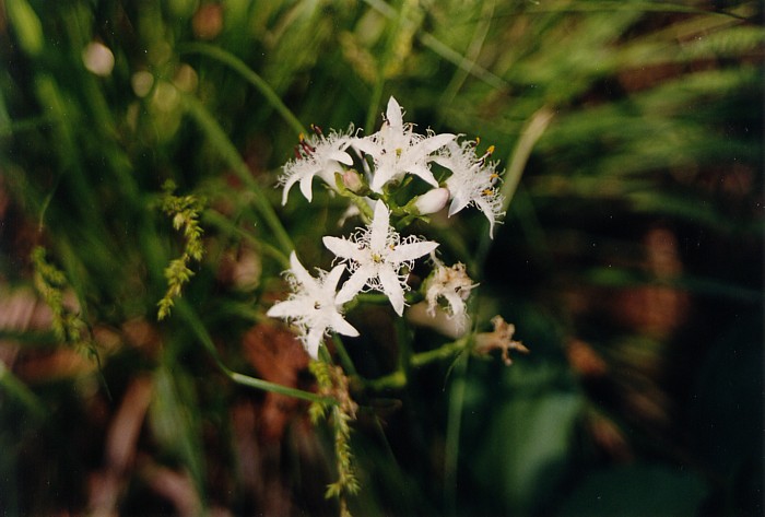 bobrek trójlistkowy (Menyanthes trifoliata L.) – roślina pospolita, choć ostatnio obserwowany jest spadek stanowisk jej występownia