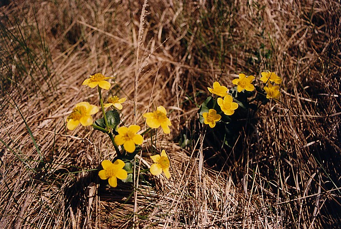 . charakterystyczna dla mokrych łąk knieć błotna (Caltha palustris) z rodziny jaskrowatych, zwana często kaczyńcem lub kaczeńcem jest rośliną trującą