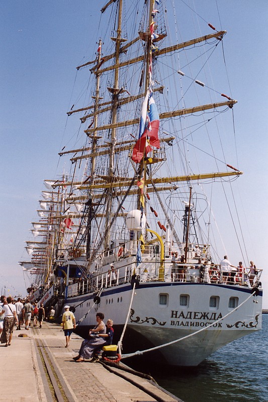 inna największa jednostka cumująca w basenie portu, którą można było zwiedzać to zbudowana w Stoczni Gdańskiej w 1991 r., na wzór Daru Młodzieży, rosyjska fregata Nadieżda o długości 108,6 m należąca do klasy A