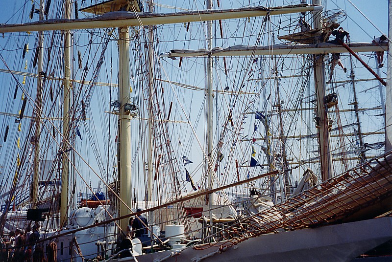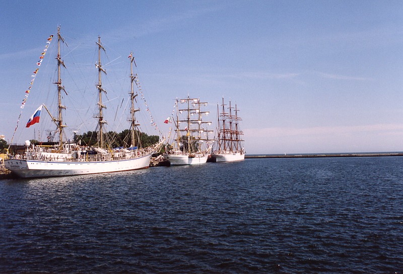 trzy żaglowce klasy A: dwa pierwsze to w kolejności rosyjska Nadzieżda i meksykański Cuanuhtemoc, ostatni to czteromasztowy rosyjski bark Siedow - największy żaglowiec szkolny świata (długość 121,6 m) zbudowany w 1921 r.