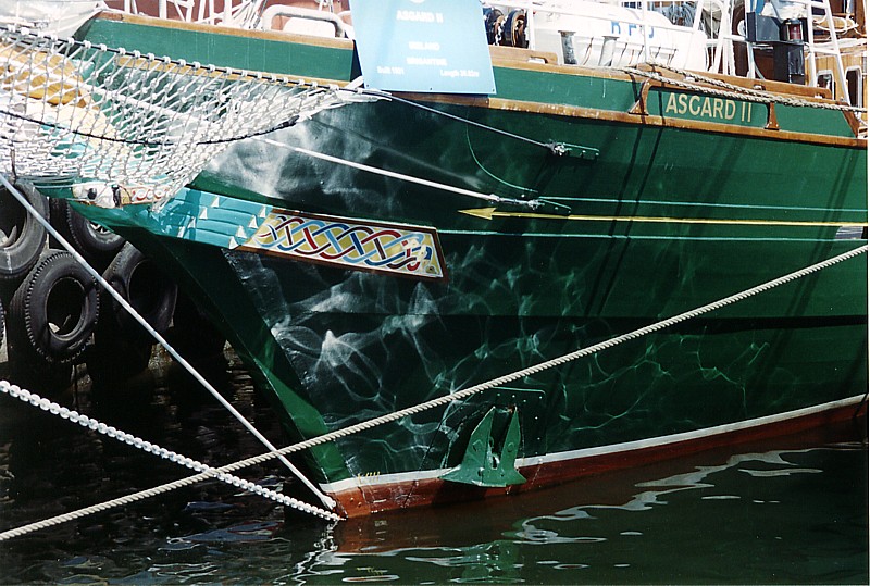Piękna zielona burta irlandzkiego żaglowca klasy A II (długość: 30,02 m) o nazwie Asgard II