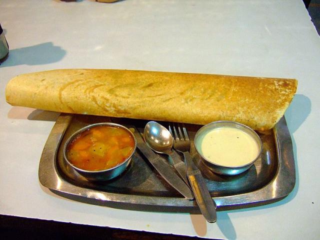 Dosa czyli wielki naleśnik z nadzieniem ziemniaczanym.