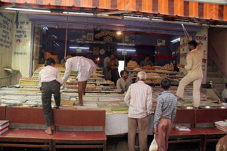 Jedną z atrakcji świeta Diwali są słodycze. Cukiernie mają specjalną przebogatą ofertę. Aby ekspedient nie wpadł w ciasta ma specjalny sznurek bo przytrzymania się i wiszenia nad towarem.