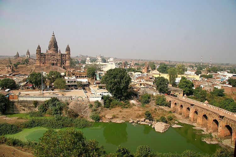 ORCHA, średniowieczne miasto, urokliwe,wspaniałe pałace z epoki Wielkich Mogołów. Małe i prawie bez turystów, za to wszędzie wokól miasta pełno mniej lub bardziej opuszczonych świątyń.