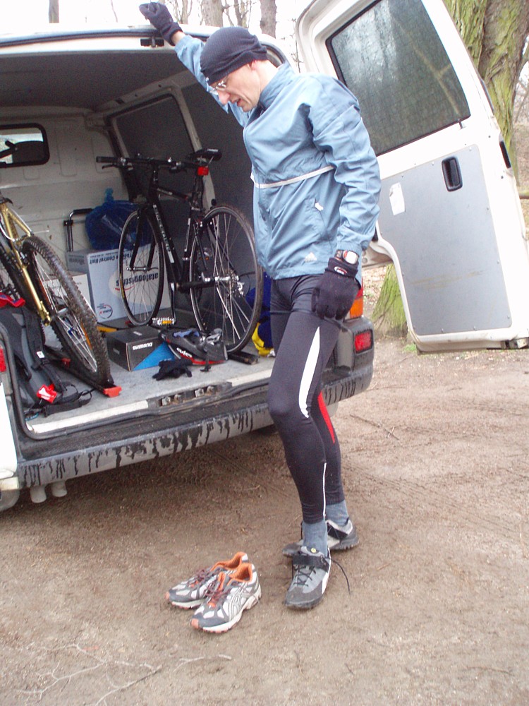 Po rowerze zmiana butów na biegowe.