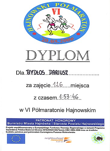 | VI Hajnowski Półmaraton 20.05.2006 tekst: Renata zdjęcia: Renata i Darek |