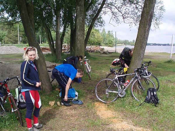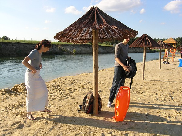 | Dziœ po³¹czyliœmy rower z p³ywaniem. Wybraliœmy siê z Luiz¹, butterfly i Paw³em87 nad Zalew Zegrzyñski rowerami. Rano by³o ch³odno, ale na szczêœcie nie zapowiadano opadów. Jednak po wczorajszym, chwilami doœæ intensywnym deszczu, och³odzi³o siê znacznie. W plecakach mieliœmy jednak pianki, czepki, okularki do p³ywania i rêczniki. Pawe³ znalaz³ dogodne do p³ywania miejsce i zaczynamy siê przebieraæ. | |