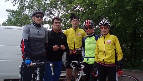 | Grupa po powrocie znad Zalewu. Od lewej: Pawe³, Kuba, Darek, Luiza i Renata (batterfly w tym czasie jeszcze jecha³a na rowerze) | |