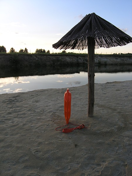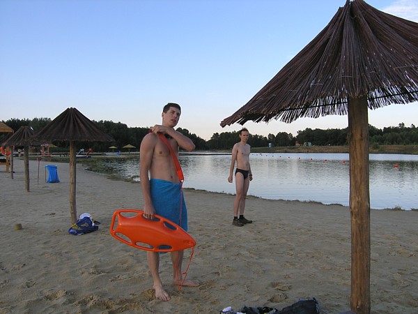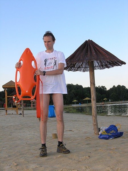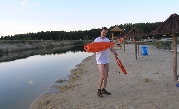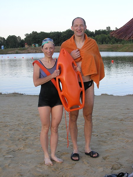 | Kolejny krok w nauce p³ywania w wodach otwartych: p³ywanie z bojk¹ ratownicz¹ (znan¹ z pewnego amerykañskiego serialu, pod nazw¹ "pamelka"). W pi¹tkowe popo³udnie towarzyszy³a nam podczas p³ywania na k¹pielisku w K¹cku. | |
