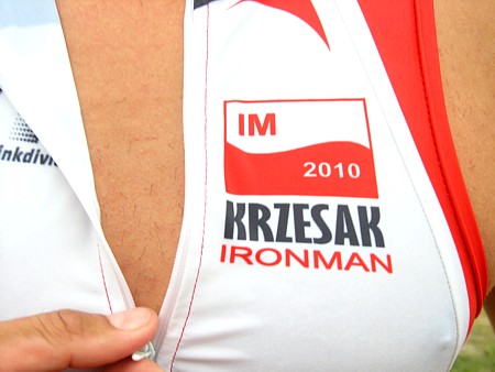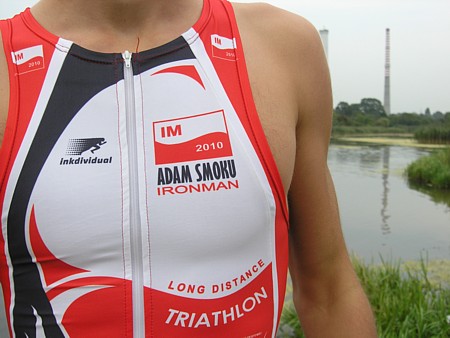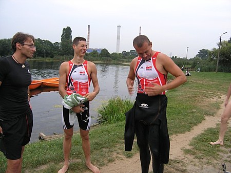 | Przysz³y stroje triathlonowe. Od razu nast¹pi³o testowanie ich w warunkach naturalnych. Najbli¿ej by³o do Jeziorka Czerniakowskiego, st¹d te kominy EC w tle.