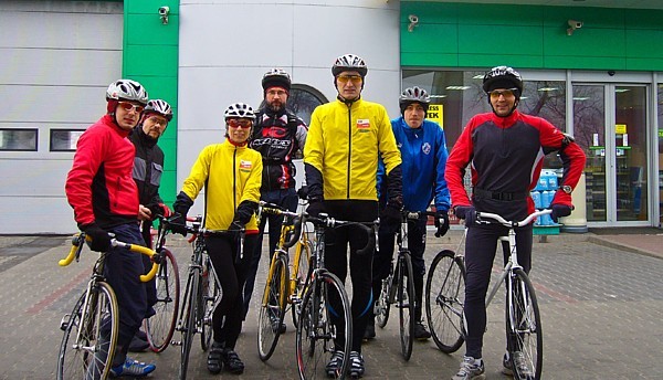 | Niedziela zaś, znów była pochmurna i chłodna. A w planie wycieczka rowerem szosowym. No cóż, nie pozostało nic innego, jak ciepło się ubrać, zabezpieczyć stopy, które na rowerze najbardziej marzną. Za radą Sylwka (biegacza i kolarza, który przejechał w swoim życiu pewnie tysiące kilometrów) zakładamy po dwie pary cienkich skarpet, a pomiędzy nie ... folię aluminiową, aby zwiększyć izolację. Zobaczymy, czy się sprawdzi w temp. 2 stopni C. Jedziemy do Starej Miłosnej na miejsce zbiórki. Pojawiają się kolejni uczestnicy dzisiejszej wycieczki. Po ostatnich oględzinach rowerów, dopompowaniu kół, ruszamy zwartą grupą w kierunku drogi krajowej nr 17. Na początku nieśmiało z tyłu za wprawnymi kolegami kolarzami, ale później coraz bliżej peletonu, bo wiatr utrudnia jazdę samotnie. Grupa osłania i daje motywację do utrzymywania tempa jazdy. Jedziemy cały czas szosą nr 17, szerokie pobocze pozwala nawet na jazdę dwóch rowerów obok siebie. Na podjeździe kilku kolegów wyrywa do przodu robiąc sobie premię górską, ale potem tempo wraca do średniej przyjaznej początkującym. Staram się nie gubić czołówki, doganiam ich i jedziemy dalej razem. Przed nami, znajomy mi z ubiegłotygodniowej wycieczki z Darkiem tą samą trasą, podjazd na wiadukt kolejowy w Lubieniu. Jeszcze tylko kawałek i będzie półmetek zaplanowany w barze Huzar. Bar okazuje się być jednak nieczynny i jedziemy dalej. Mijana po drodze tablica mówiła o stacji benzynowej za 5 km. Robimy sobie przerwę na gorące napoje i ciasteczka, rozgrzewamy zziębnięte stopy. Zanim ruszymy w drogę powrotną zahaczamy jeszcze o bar, w którym oglądamy zwycięski finisz Justyny Kowalczyk. Podbudowani zwycięstwem rodaczki w Pucharze Świata w narciarstwie biegowym, grupa rusza zmagając się z wiatrem. Powrót zajął nam w sumie 5 minut dłużej, pewnie właśnie z powodu tego wiatru. Moje odczucia z jazdy w grupie na tym odcinku były inne niż jazda samotnie. Fajnie jedzie się z doświadczonymi kolegami, którzy wiedzą jak sterować tempem, aby nikt nie został z tyłu, np. na światłach, czy rondzie. Dodatkową zaletą było osłanianie od wiatru i zmiany prowadzącego. W grupie drzemią zupełnie inne siły i jest wielka motywacja dla wolniejszych. Bardzo się cieszę z tej wspólnej wycieczki, która dużo mnie nauczyła i nastawiła pozytywnie do czekających nas do przejechania kilometrów na rowerze. Tutaj kilka zdjęć z dzisiejszej jazdy |