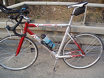 | Złapałam dziś rano za rogi swojego Keli i pognaliśmy szosą. Było cudownie. Świeciło słońce, wiatr tylko od podmuchu przejeżdżających aut i ten nieduży tworzący się przy naszej zawrotnej prędkości. Tylka ja i mój Keli. Tzn. był jeszcze Darek, ale jechał z tyłu, a ja nie mogłam się przecież co chwilę oglądać. No, wiecie nie żebym nie zwracała na Darka zupełnie uwagi, ale musiałam przecież panować nad kierownicą i patrzeć co się dzieje przede mną. A wrażenie niesamowite (dla kogoś kto pierwszy raz w życiu jechał szosą na rowerze szosowym - śmiesznie brzmi), bo rower lekki i taki wrażliwy. Zanim się nie zgraliśmy musiałam nieźle uważać na to delikatne cudo. Najbardziej się zaniepokoiłam, gdy się okazało, że nie mam czym hamować. Ojoj, gdzie są te klamki, no tak były, ale w zupełnie innym miejscu niż do tej pory ich szukałam. Potem już była tylko zabawa ze zmianą biegów, wciąż wrzucałam nie taki bieg jak chciałam, zamiast lżejszego wchodziło ciężkie przełożenie, bo się myliłam. W drodze powrotnej Keli już wiedział czego od niego oczekuję i nawet dogoniliśmy inną parę na szosówkach, która mijała nas po drodze gdy zatrzymaliśmy się na moment rozprostować plecy. | |