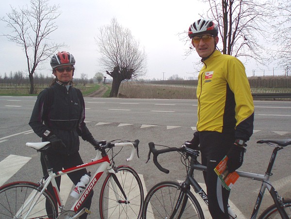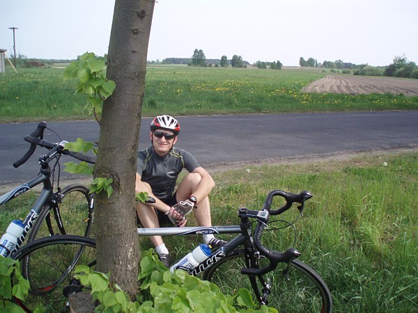 | Wczoraj sprawdzaliśmy swoje możliwości rozwijania szybkości na płaskiej trasie w okolicach Mariewa na tzw. mikroczasówce, czyli jeździe indywidulanej na czas na odcinku ok. 6 km. Trzeba było jechać na maksa przez 3 km, potem nawrotka i powrót. Adam Krzesak fotografował nasze zmagania. Był wiatr i nie jesteśmy ustaysfakcjonowani ze swoich osiągów (Renata 12 min 25 sek /śr. pr. 30 km/h, Darek 10 min 56 sek /śr. pr. 34 km/h/. Trzeba będzie powtórzyć tę próbę. Mieliśmy za to okazję spotkać się w sympatycznym gronie znajomych i fajnie spędzić czas w pierwszy dzień majówki. | |