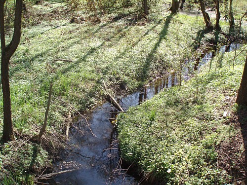 | Tutaj Luiza odbija na 50-tkę na wschód w drogę powrotną, my na zachód na dalszą część naszej pętli. Trasa wiedzie najpierw wśród pól, a potem za Sobieniami romantycznie w lesie, w którym aż biało od zawilców, a w przydrożnym rowie przeglądają się w wodzie żółte kaczeńce. Nie zatrzymujemy się, bo mam wrażenie że czasu jest mało, a przed nami wciąż więcej niż połowa zaplanowanej wycieczki. Z daleka widać już wieże kościoła w Osiecku. Za kościołem czeka nas podwójna premia w postaci chropowatego asflatu, najwięcej cierpią na tym nadgarstki. Ciągnęło się tak aż prawie do Taboru. Potem dwie krzyżówki i jesteśmy pod Celestynowem. | |