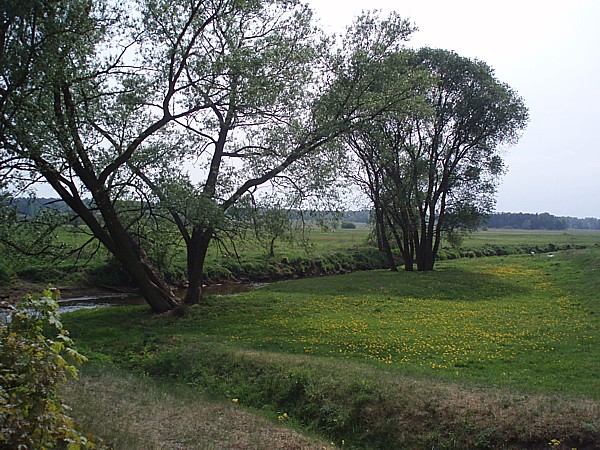 | Znów przekraczamy Świder, tym razem w bardzo urokliwej okolicy. Życie płynie tutaj sielsko, anielsko. Mijamy dwór w Dłużewie, w którym obecnie co prawda nie mieszkają już jego właściciele, ale służy on studentom ASP jako baza do plenerów. | |